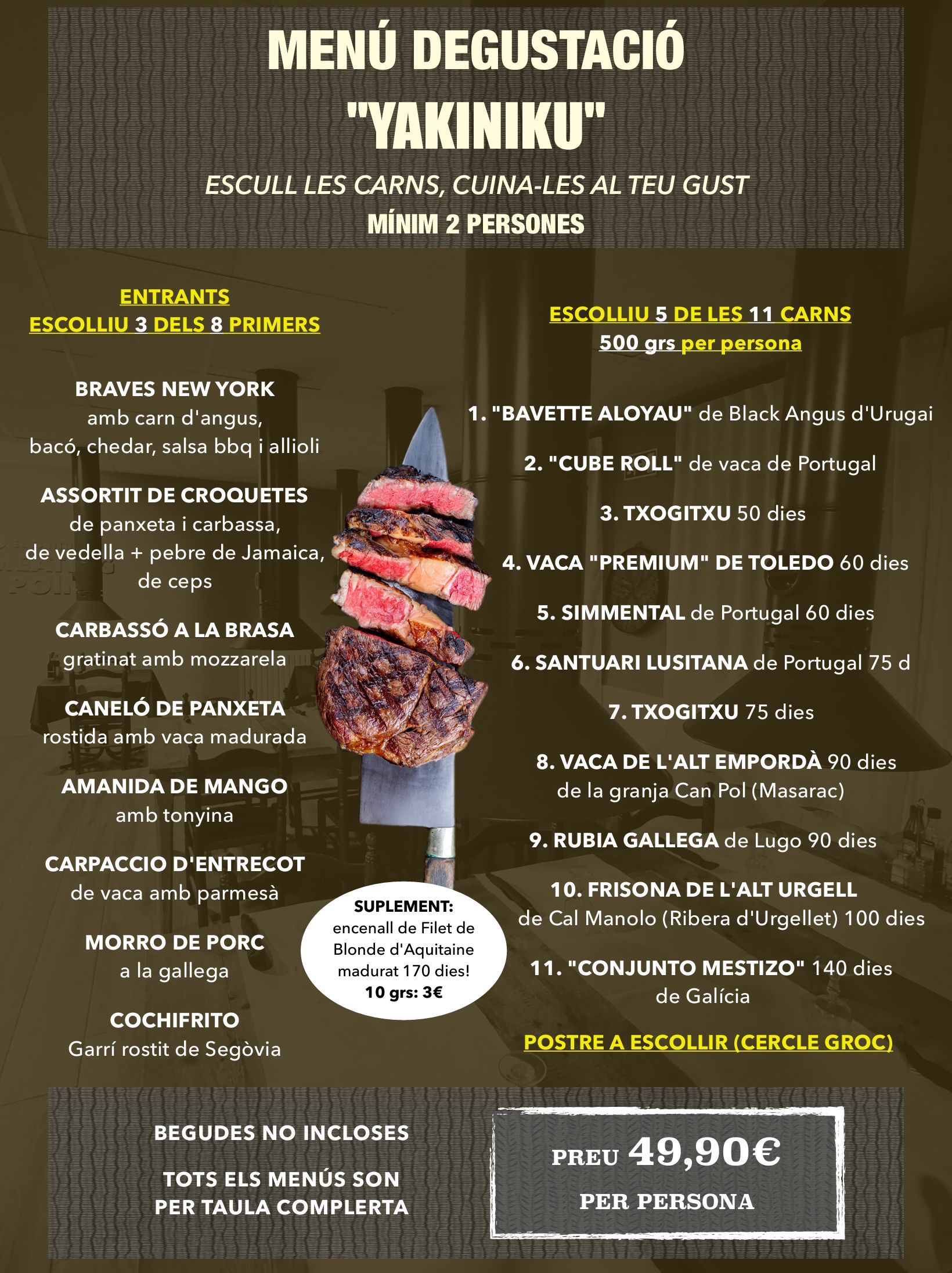 - Qualsevol de les carns de La Carta (suplement de 4€ x persona)